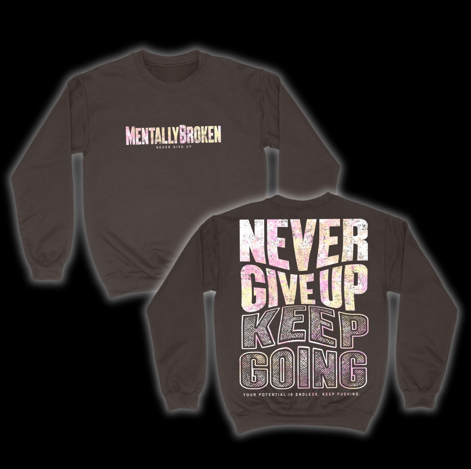 “NeverGiveUp” Sweatshirt - Chocolate